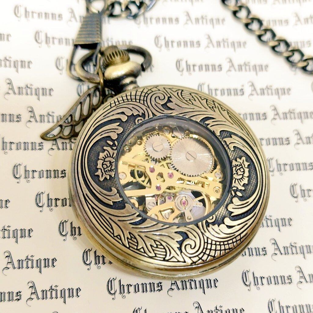 蓋に龍と鳳凰の彫刻がされている格好いい機械式懐中時計です。