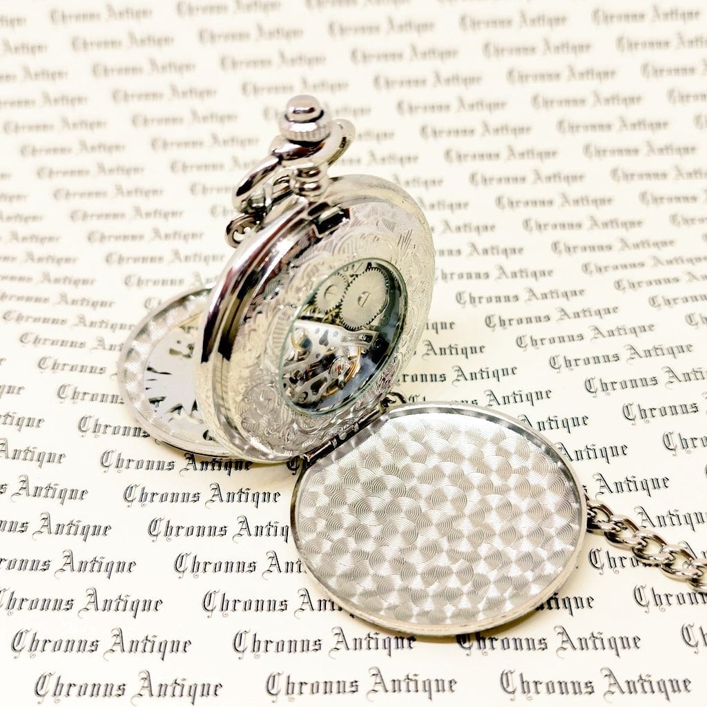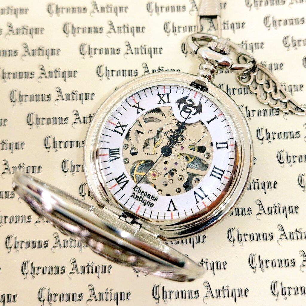 No.198w 手巻き式懐中時計【両開きタイプ】 ( 198w,シルバー,龍白,両開き,銀翼,銀M,黒針)