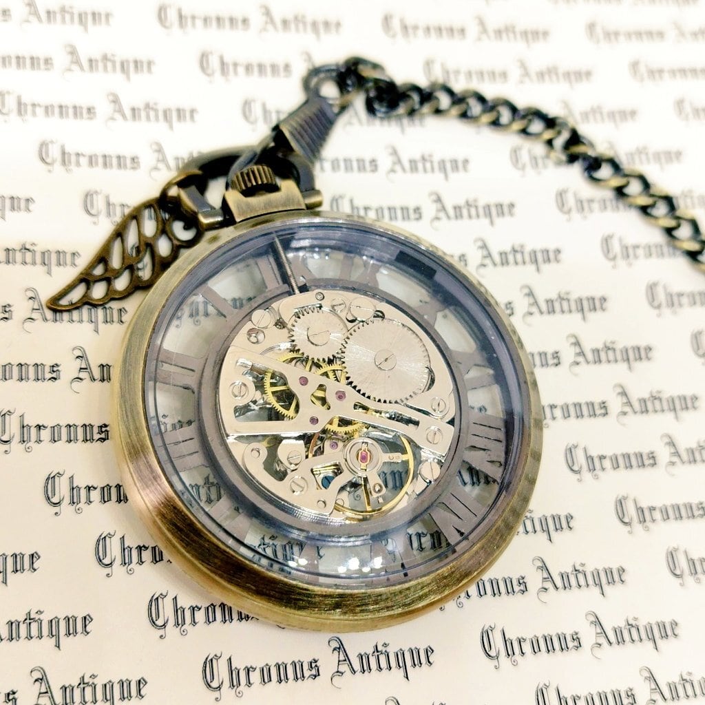 No.188 手巻き式懐中時計( 188,金古美,白●文字盤,フルスケルトン,金古翼,銀M,黒針)