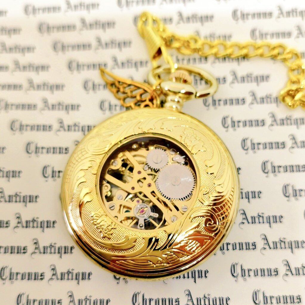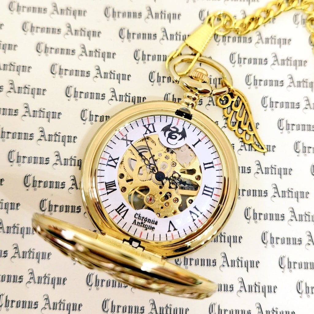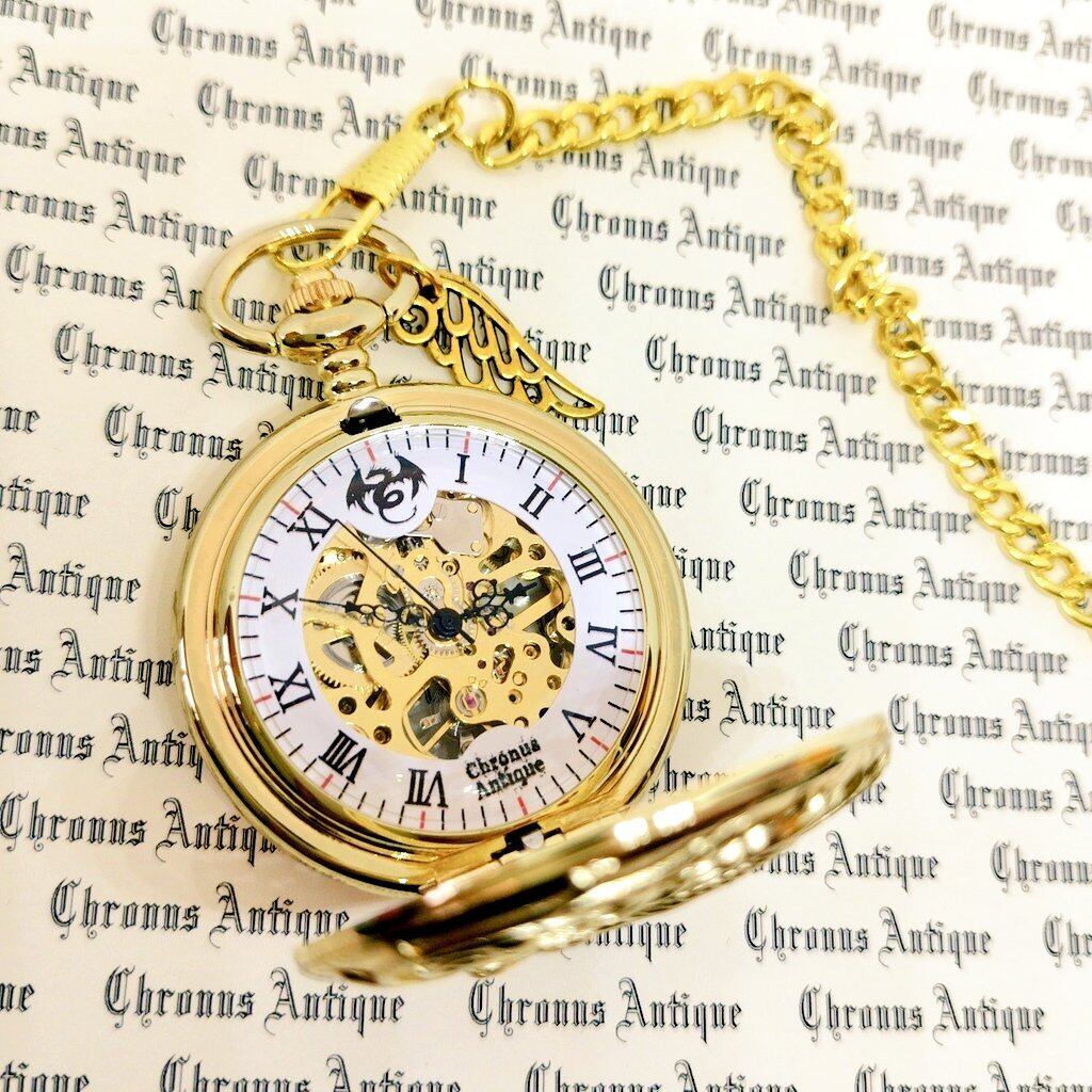 No.197 手巻き式懐中時計( 197,金,龍白,金の龍,金翼,金M,黒針)