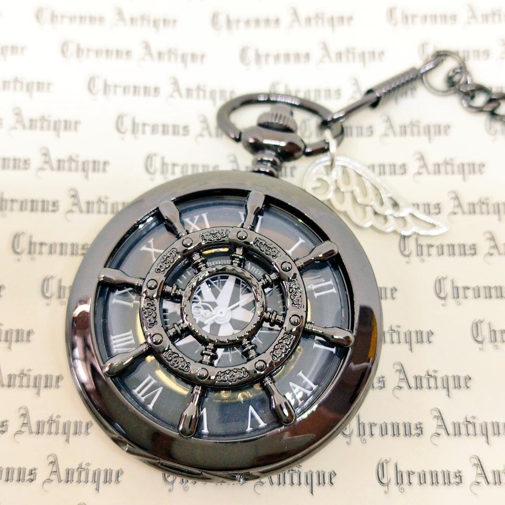 【2025年夏新作】No.209 手巻き式懐中時計 (209 クローム 羅針盤 舵 銀翼 金M 白針)