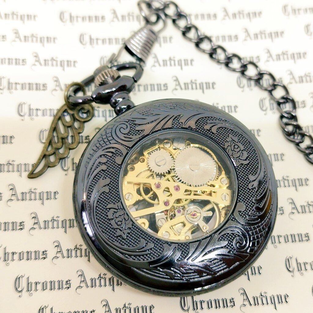 【限定品】No.B178G 手巻き式懐中時計( B178G,クローム,黒歯車,白文字盤,金古翼,金M,黒針 アラビア数字文字盤)