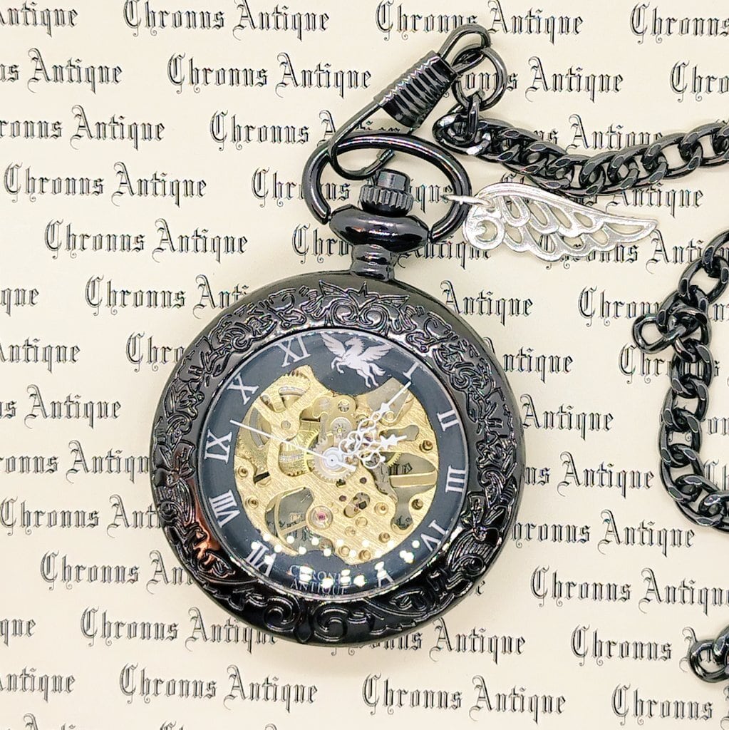 No.212 手巻き式懐中時計( 212,クローム,ビッグフェイス,午黒,銀翼,金M,白針)